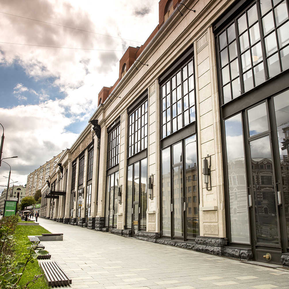поставщик комплексных решений по изготовлению специальных авторских профилей, стальных светопрозрачных фасадных систем и дверных конструкций
