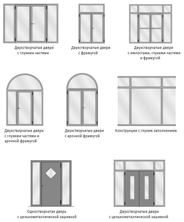 • двери в стоечно-ригельном фасаде;