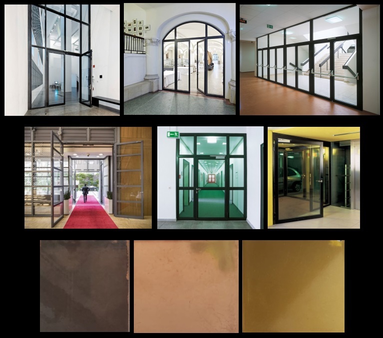 • двери в рамном витраже;